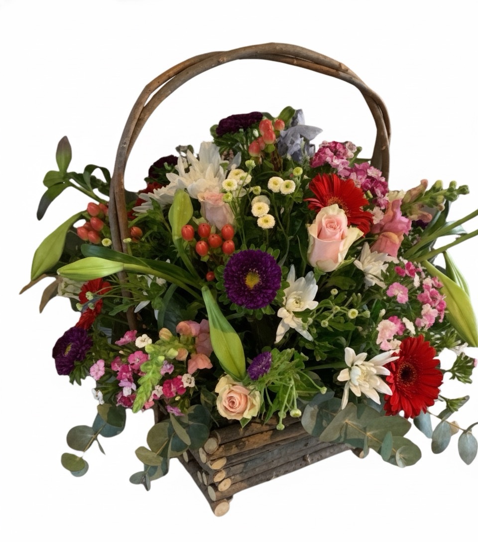 Basket of Mixed Seasonal flowers. One of our best sellers as it is appropriate for any occasion. Orders received before 12h00 Mon- Fri, Sat 11h00 can be done same day, after 12 give us a call to confirm if we can accommodate.