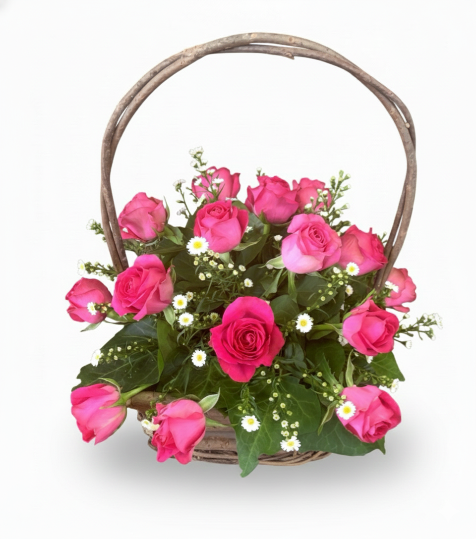 Add a splash of color to any celebration with our stunning Kaleidoscope Rose Basket. Featuring a lush gathering of the season’s finest roses, this arrangement is artfully balanced with fresh greenery and presented in a charming rustic basket. Whether you choose a bold mix of colors or a single favorite shade, these premium blooms are the perfect way to deliver joy, gratitude, or “just because” wishes to someone special.