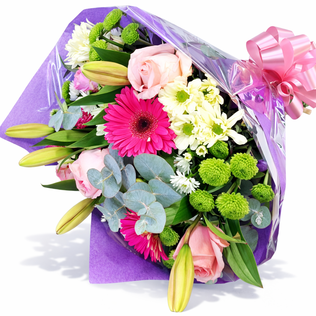 This bouquet blends delicate shades of blush and candy pink with crisp, snowy white blooms. To create that “freshly gathered” look, we’ve tucked in airy fillers and lush, textured greenery. It’s a whimsical bouquet that feels like a stroll through a summer garden, designed to bring a sense of peace and joy to any room.