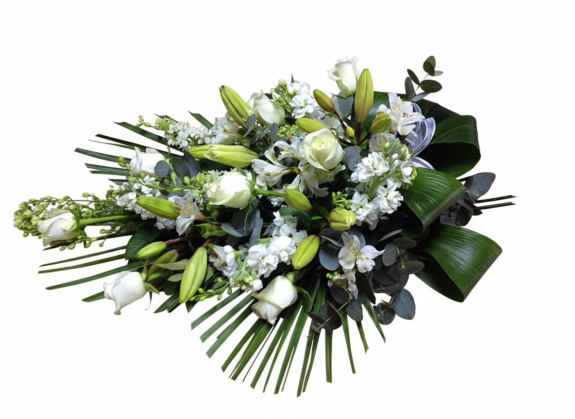 Wreath arranged looking like a bunch of flowers. Something different. Orders received before 12h00 Mon- Fri, Sat 11h00 can be done same day, after 12 give us a call to confirm if we can accommodate.
